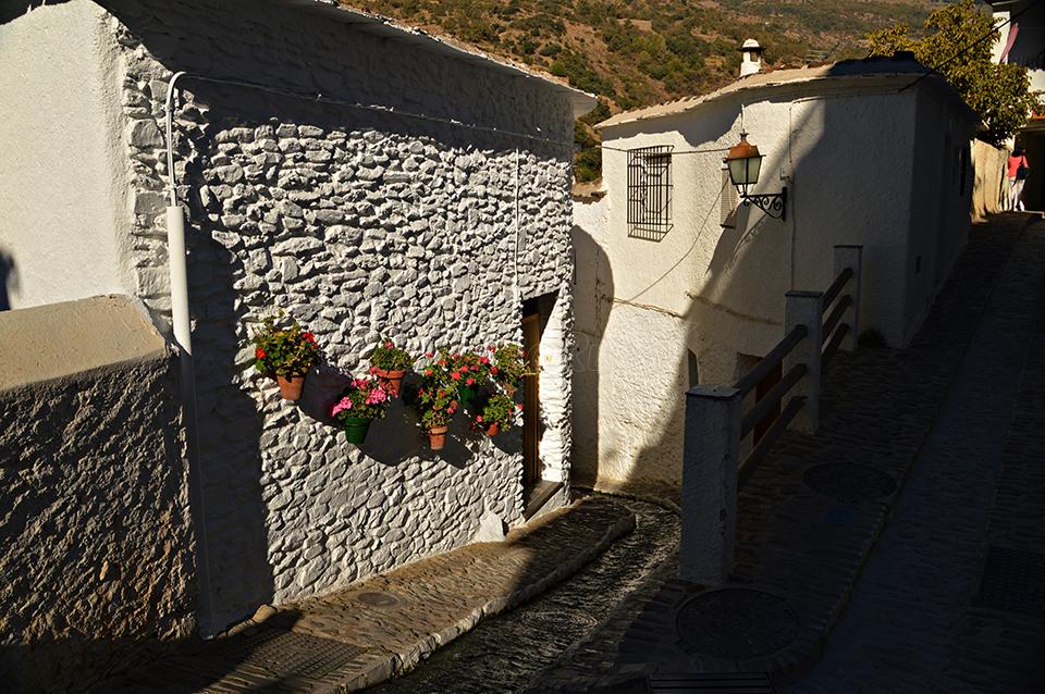 Pampaneira es un pueblo de la Alpujarra, al sureste de la provincia de Granada. El pueblo se denominó Conjunto Histórico Artístico por su extraordinaria arquitectura, que conserva la tradición alpujarreña de casas blancas de tejados planos con chimenea de sombrerillo y los tipicos tinaos.